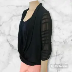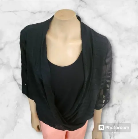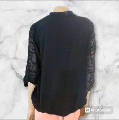 Thalia Sodi Blusa Formal C/Camisole, talla XG, color neuro solid con acentos de Alta costura, cuello Redondo, forbade por destroyed, Manga 1/3 cuartos con bottles Dorados, cintura elastica, Hecha con mesca de polyester, rayon y expandex, mide 41cm de hombro a hombro , 49cm de Cintura, 51cm de Manga con 62cm de largo del hombro hacia abajo, nueva a estrenar con etiqueta en buenas condiciones.