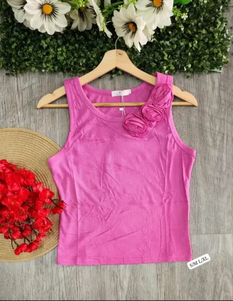 Bonitas blusas básicas tipo top, con detalle de rosa a un costado, rosa y blanca