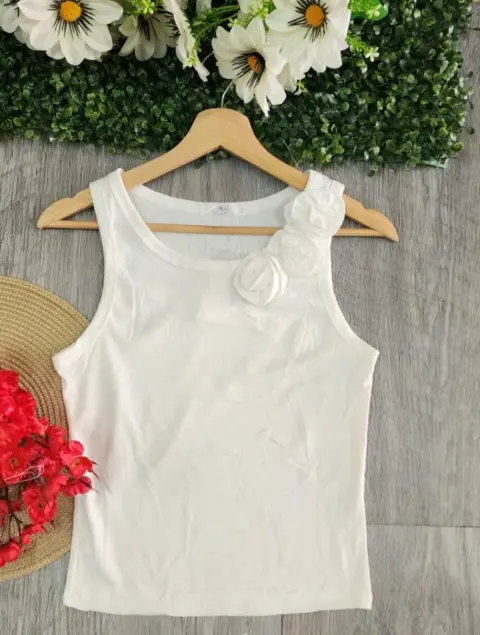 Top. Bonitas blusas básicas tipo top, con detalle de rosa a un costado, rosa y blanca