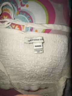 Fresco top de tirantes American Eagle tipo encaje, tiene una mancha pequeñita. Largo: 21 cm. Ancho: 38.5 cm (tiene resorte en la parte de atrás, así que se estira un poco).