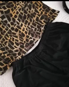 Top animal print. Blusa corta tipo crop, mangas largas, animal print con brillitos y broche en espalda.