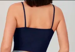 Top básico azul. Top básico de microfibra, textura canalé, color azul marino, cierre al frente, que da a talla SEnvío a la brevedadTodas las compras incluyen obsequioHago envío único