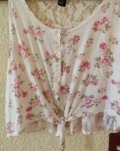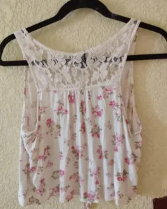 Top floreado talla M, con encaje en la parte de atrás, se puede amarrar por enfrente