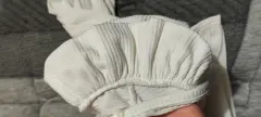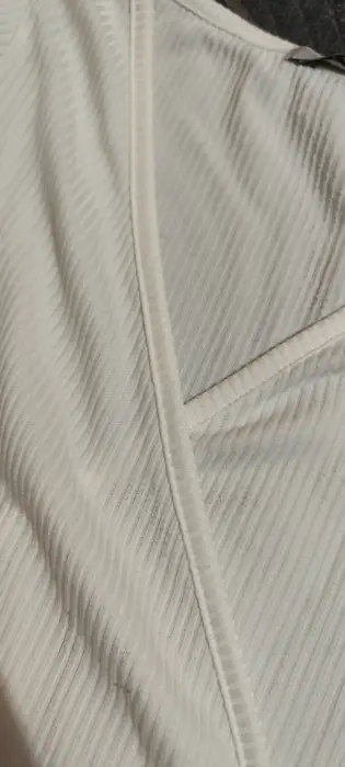 Se usó un par de veces, muestra un poco de desgaste en el color. La tela se transparenta un poco, así es el estilo. Talla S, no queda ajustado al cuerpo.La mangas son 3/4 llegan a la altura del codo, no cubren totalmente el brazo.