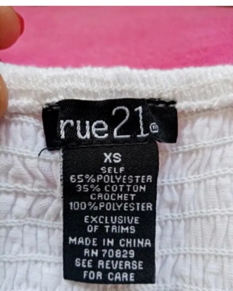 Top color blanco talla XS marca Rue 21, nuevo sin etiqueta, sin ningún detalle.
