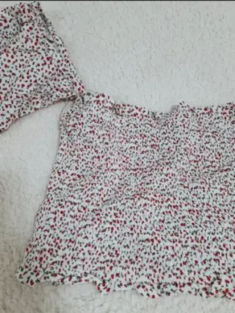 TOP BLUSA CUELLO CUADRADO. TOP BLUSA CUELLO CUADRADO, estampado de flores rojas, talla S-M checa medidasMedidas:De axila a axila 42cmLargo 44cm