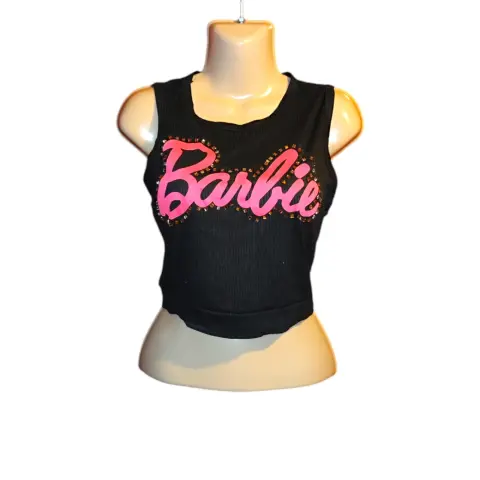 Top de Barbie color negro. Linda blusa corta tipo ombliguera de letras Barbie con piedritas color negroMedidasAxila axila 40 cmLargo 40 cmAncho Cintura 35Estira un poco