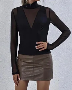 Top de maya cuello alto. Talla: S (Hombro: 36 cm, pecho: 82 cm, largo manga 27-60 cm, largo 55 cm).Si te interesa un paquete házmelo saber, con gusto te lo armamos