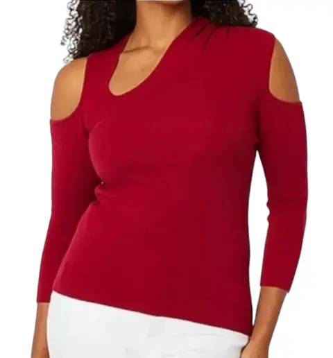 🌻Top Elements mangas 3/4 asimétrico ☺️🌻Con hombros descubiertos😉🌻Color cereza marraschino 🍒🌻 Composición 70% algodón y 30% naylon🌻 Escote asimétrico 👌🌻¡Te encantará! 🥰🌻NOTA: Los colores pueden variar un poco del original dependiendo de la luz y de la cámara 📸