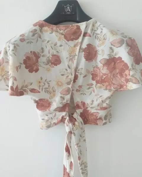 Blusa floreada, manga corta, se ajusta a la medida en la parte de atrás.Escote en v, súper cómoda y linda para lucir tu cintura y abdomen.Excelentes condiciones.