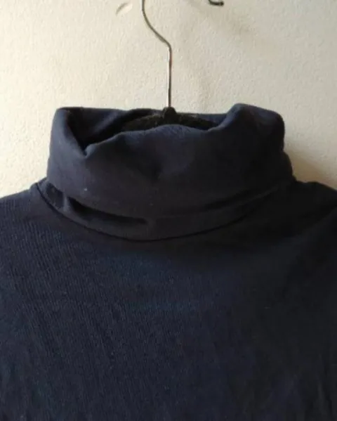 Blusa top color azul marino, con cuello de tortuga, es muy ligera, tela fresca de algodón, talla M