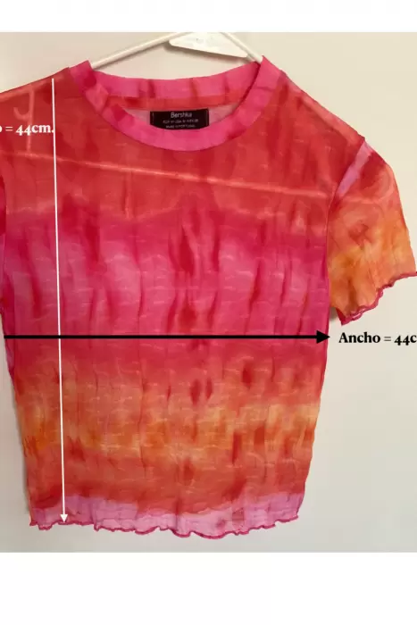 ✨ TALLA: M / MEX 28❤️ Top mesh con efecto tie dye (teñido), color rosa y naranja💜 manga corta🤍 transparencia💜tela spandex✨ en excelentes ocasiones, no tiene ningún detalle ✨