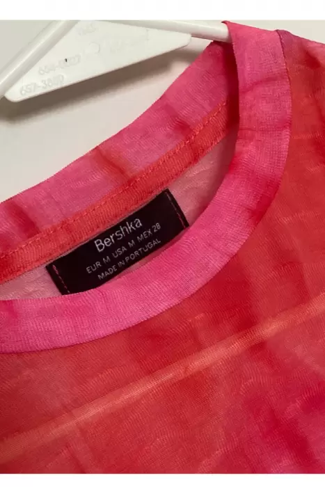 Top rosa mesh. ✨ TALLA: M / MEX 28❤️ Top mesh con efecto tie dye (teñido), color rosa y naranja💜 manga corta🤍 transparencia💜tela spandex✨ en excelentes ocasiones, no tiene ningún detalle ✨