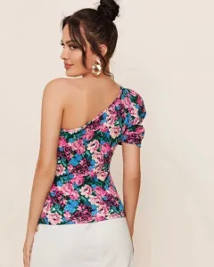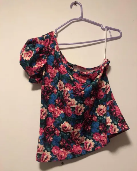 Top shein floral. Hermoso top floral talla grande, de manga farol de un hombro, medidas Pecho:90.5 cm largo :56cm largo de manga: 34.9 cm
