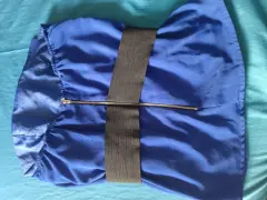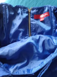 Top strapless azul con olanes, cinturón en la cintura de resorte, cierre en la parte de atrás, con doble fondo, no se transparentes, talla s pero le puede quedar a un M