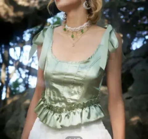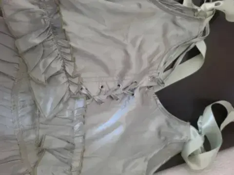 Crop top tipo corsé color olivo satin. Cintas reguladoras de tirantes y en espalda o frente. Queda arriba de la cintura. La tela tiene detalles de hilos jalados en tres lugares, casi imperceptible, está en las fotos y realmente no se ven. Es nuevo. Medidas pecho 86 cm.