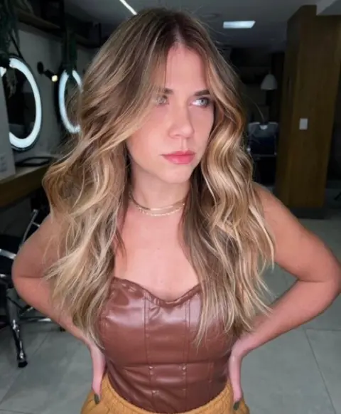Top vinipiel color café talla chica muy cómodo y combinable, queda largo