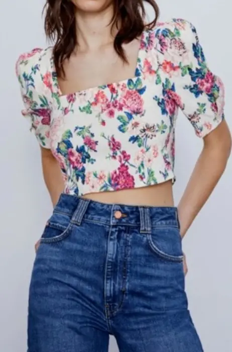 Crop top floreado manga globo Talla M o 28 Zara Una sola puesta