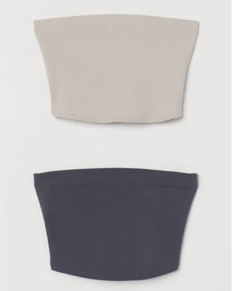 Tops de tubo cortos (pack 2). Talla M, nuevo con etiqueta. No estira mucho, no queda a talla L. 37 cm de axila a axila. Color gris y beige.