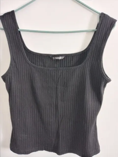 Toptank negro. Lindo diseño de top de tirantes en color negro, de canalé, entalla muy bonito al cuerpo y estira. Medidas: largo 51.5 cm Pecho 87 cm, composición 93% algodón 7% Elastano.Se ve igual que la foto. Super bonita y 100% recomendable.