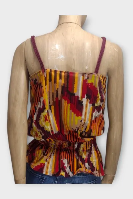 Xhilaration Blusa Dama Poliéster Colores LBlusa marca Xhilaration 100% Poliéster en colores tierraMarca: XhilarationOrigen: México Material: 100% PoliésterTalla: LEstilo: CasualPatrón: CasualColor: Colores TierraCierre: AbiertoPecho: 42 cmLargo: 48 cmHombro: 21 cmManga: Sin MangasRopa de USO en muy buen estado