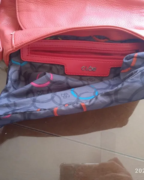 Padrísima bandolera Cloē, color salmón, original, forro intacto, detalles de uso en la base, en las 4 esquinas y en el broche rayones pequeños del uso, así como detalle de tiempo en la correa. Cómo se muestra en las fotos. Aunque es un bolso usado aún le queda mucha vida.