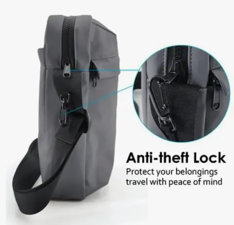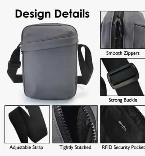 BANDOLERA NUEVA COLOR GRIS. Bolso bandolera pequeño unisex, bolso de hombro lateral antirrobo,RFID,mide 17.7 cm alto,13.7 cm de ancho