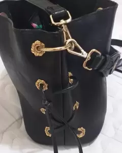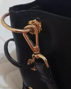 Hermoso bolso tipo crossbody color negro y muy espacioso con 5 compartimentos. No es de piel, muchas marcas ya utilizan pieles sintéticas y esta es una de ellas. La bolsa tiene mínimos detalles de uso, ninguno que afecte el diseño del bolso. Tiene dos correas para utilizarlo de diferentes formas. Detalles de uso se muestran en las últimas dos fotos. Tiene bellos acabados y es un bolso muy femenino