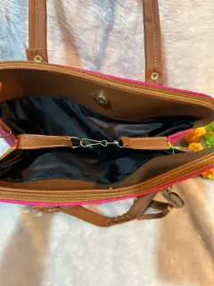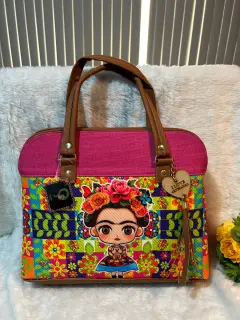 Bolsa artesanal Frida fúcsia. Bolsa artesanal completamente nueva. 27x36 cm, base 14 cm. Envío sábados tal vez antes. Trae su correa.