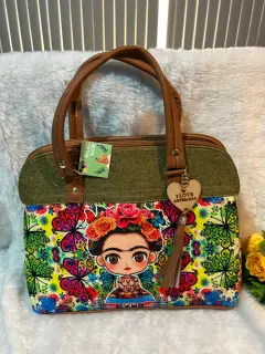 Bolsa artesanal Frida verde olivo. Bolsa artesanal completamente nueva. 27x36 cm, base 14 cm. Envío sábados tal vez antes. Trae su correa.