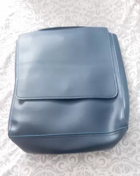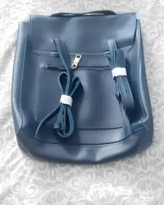 Bonita y cómoda mochila color azul completamente nueva. Material PVC. Cuenta con bolsillo tipo cartera en su interior y bolsillo secreto en la espalda.Medidas: 27.5X29X8.5 cm