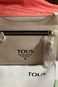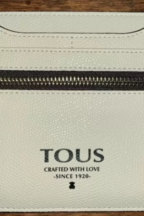 Bolsa bandolera. Tarjetero colgante Tous de piel sintética en color beige. Asa larga de bandolera, extraíble y ajustable. 3 compartimentos planos para tarjetas y un bolsillo con cremallera. Medidas: 1 x19x 1