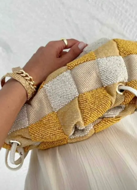 Los accesorios y bolsas son parte fundamental del outfit!! NUEVA! Muy bonita bolsa en algodón bordada con chakiras amarillas y otros bordados. Viene con srtrap desmontable. Perfecto con un outfit base blanca. Más opciones en mi clóset. La base del bordado es algodon al igual que el interior. El strap es desmontable y la puedes usar como clutch. Puede funcionar muy bien para un lindo obsequio.