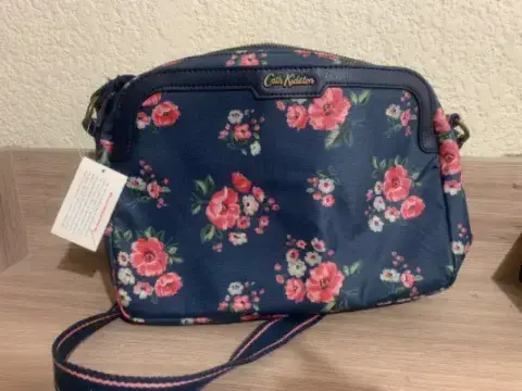 Bolsa Cath Kidston. Bolsa pequeña (23 cmx20 cm) pero espaciosa, color azul con estampado floreado y correa ajustable. Tiene dos compartimentos uno con cierre y otro con broche magnético. Nueva con etiqueta