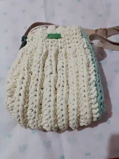Bolsa cruzada de trapillo de algodón, tejido crochet artesanal,con forro textil, medidas:20x23x8 cm, correa de textil.Envío a la brevedadTodas las compras incluyen obsequioAcepto ofertas