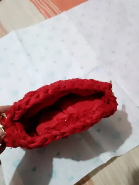 Bolsa artesanal de trapillo de :20x23x8 tejido crochet, con forro textil,con cadenaAcepto ofertasenvio a la brevedadtodas las compras incluyen obsequio