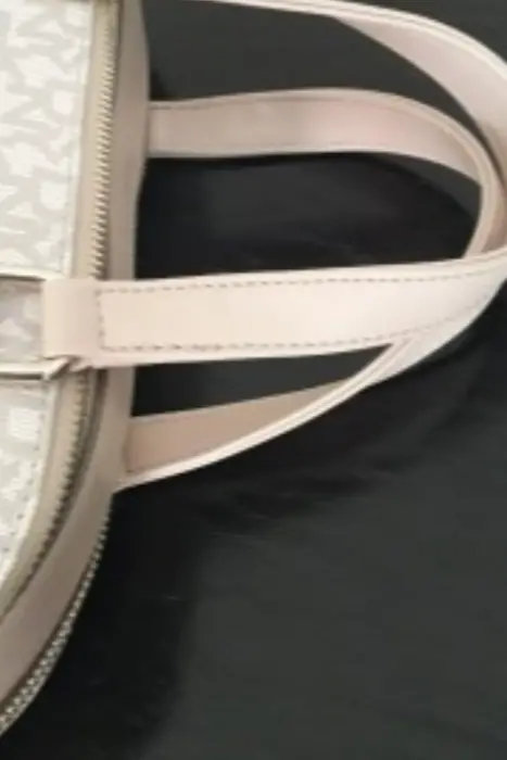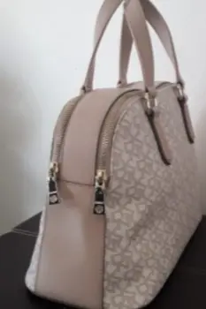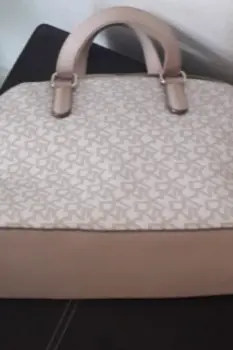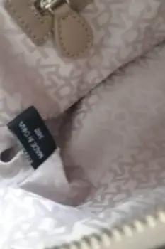 Bolsa amplia DKNY, color beige, con herrajes dorados, se puede usar como crossbody, muy amplia, piel con tela. envio en caja reciclada