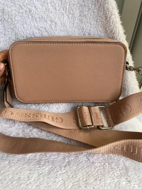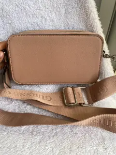 Bolsa crossbody Guess. Hermosaaaa bolsa de dos compartimentos , nueva y con etiqueta, solo tiene un poco detalle en las dos ultimas fotos se aprecia , es unas manchitas en el cierre y en la parte de abajo muy poco , muy cómoda correa y hermoso color , Original , llévate un bonito 🎁😊