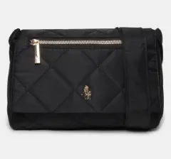Bolsa crossbody negra HPC POLO. Bolsa Crossbody con logo metálicoAsa: 1 larga ajustableCompartimientos: 2Bolsillos: 2Material: poliéster 100%Medidas: largo: 25 cm, alto: 17 cm, profundidad: 10 cm