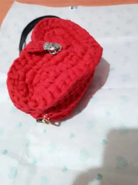 Bolsa cruzada crochet corazon. Bolsa artesanal de trapillo, 20X15x10 CM, correa de simipiel 120 CMTodas las compras incluyen obsequioEnvío a la brevedadHago envío único