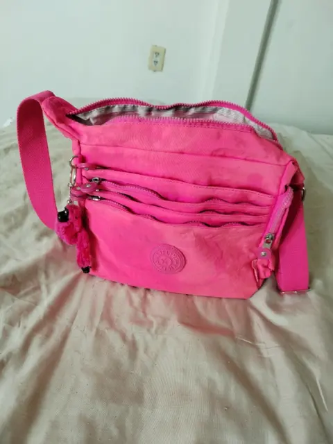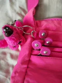 Preciosa bolsa cruzada Kipling color fiusha, con varios compartimientos, los cierres funcionan perfectamente, único detalle que tiene es que la tela está algo descolorida por el sol, como se muestra en las fotos, de lo demás está bien.