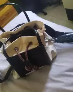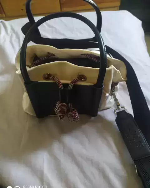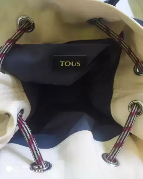 Es una bolsa de mano ohoo cruzada en buenas condiciones color crema