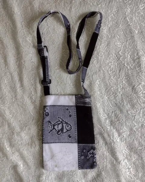 Bolsa de cruzada de Acapulco$150Es negro con blanco y fijuritas, le puede caber tu cel, tu cartera y otras cositas. :)