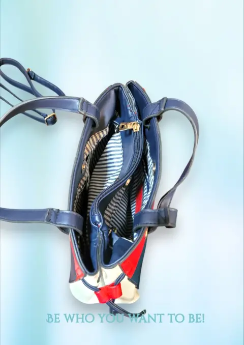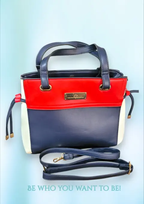 Bolsa de Mano/hombro Polo Club York Team, tamaño mediano, colores azul,rojo y blanco, multiples compartimientos Enel interior uno con cierre, forrada por dentro, tiras removibles para usar como bolsa de mano y/o hombro, acentos dorados, tiras ajustables a los lados para cerrar, hecha de pel sintetica suave, mide 30cm de ancho, 24cm largo, 11cm ancho en base, 18cm de tira de mano 99cm hombro usada