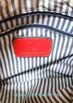 Bolsa de Mano/hombro Polo Club York Team. Bolsa de Mano/hombro Polo Club York Team, tamaño mediano, colores azul,rojo y blanco, multiples compartimientos Enel interior uno con cierre, forrada por dentro, tiras removibles para usar como bolsa de mano y/o hombro, acentos dorados, tiras ajustables a los lados para cerrar, hecha de pel sintetica suave, mide 30cm de ancho, 24cm largo, 11cm ancho en base, 18cm de tira de mano 99cm hombro usada