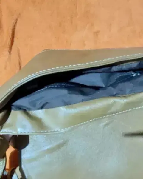 Bolsa color came mide 30largo X25 ancho, nueva sin detalles, cierra mediante broche y tiene bolsa interna que cierra mediante un cierre corredizo