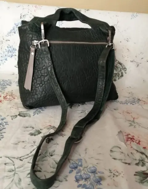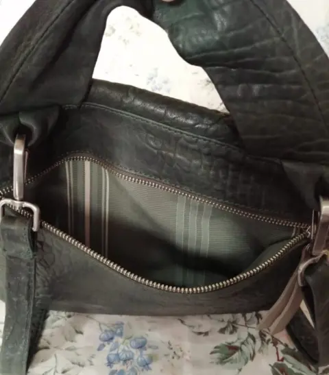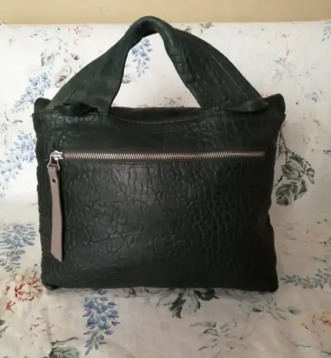 Bella bolsa de piel de elefante,, super resistente, excelente calidad,, modelos exclusivos de diseñadora israelita Daniella lehavi,,, super originales, en perfecto estado, color verde musgo,, puede usarse como maletín o con el crosbody cruzada