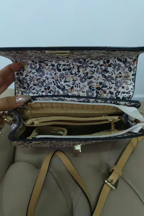 Bolsa con estampado de flores, es de buen tamaño y está en perfecto estado.