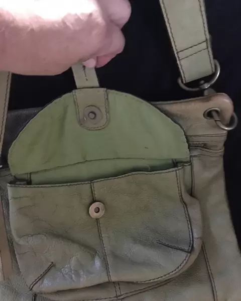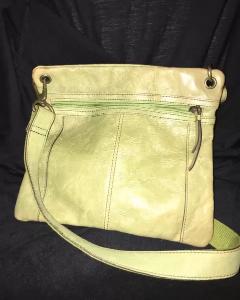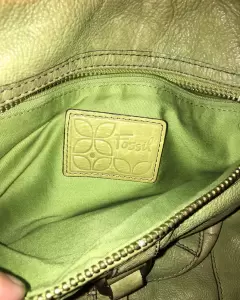 Bolsa Fossil de piel, detalles de uso, en buenas condiciones, 27 cm de ancho, 24 cm de alto