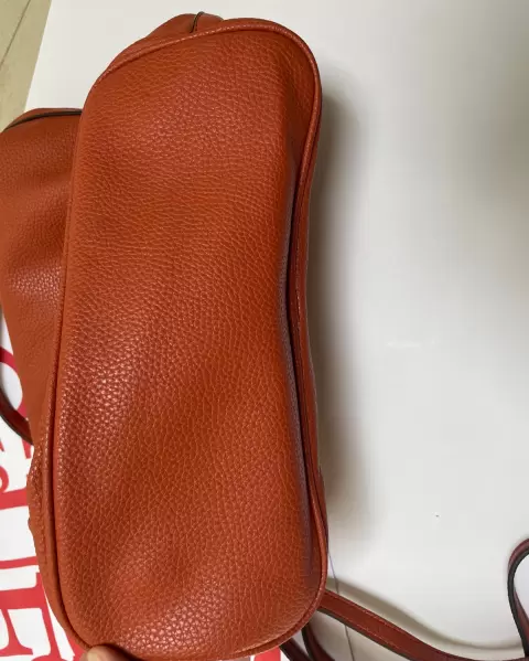 Bolsa en color naranja, la puedes usar en hombro o tiene asa larga para que se lleve crossbody. Es bolsa de uso tiene detalles, se aprecian en la foto 4. La tela no tiene manchas o rota. Tiene bolsa con cierre al costado